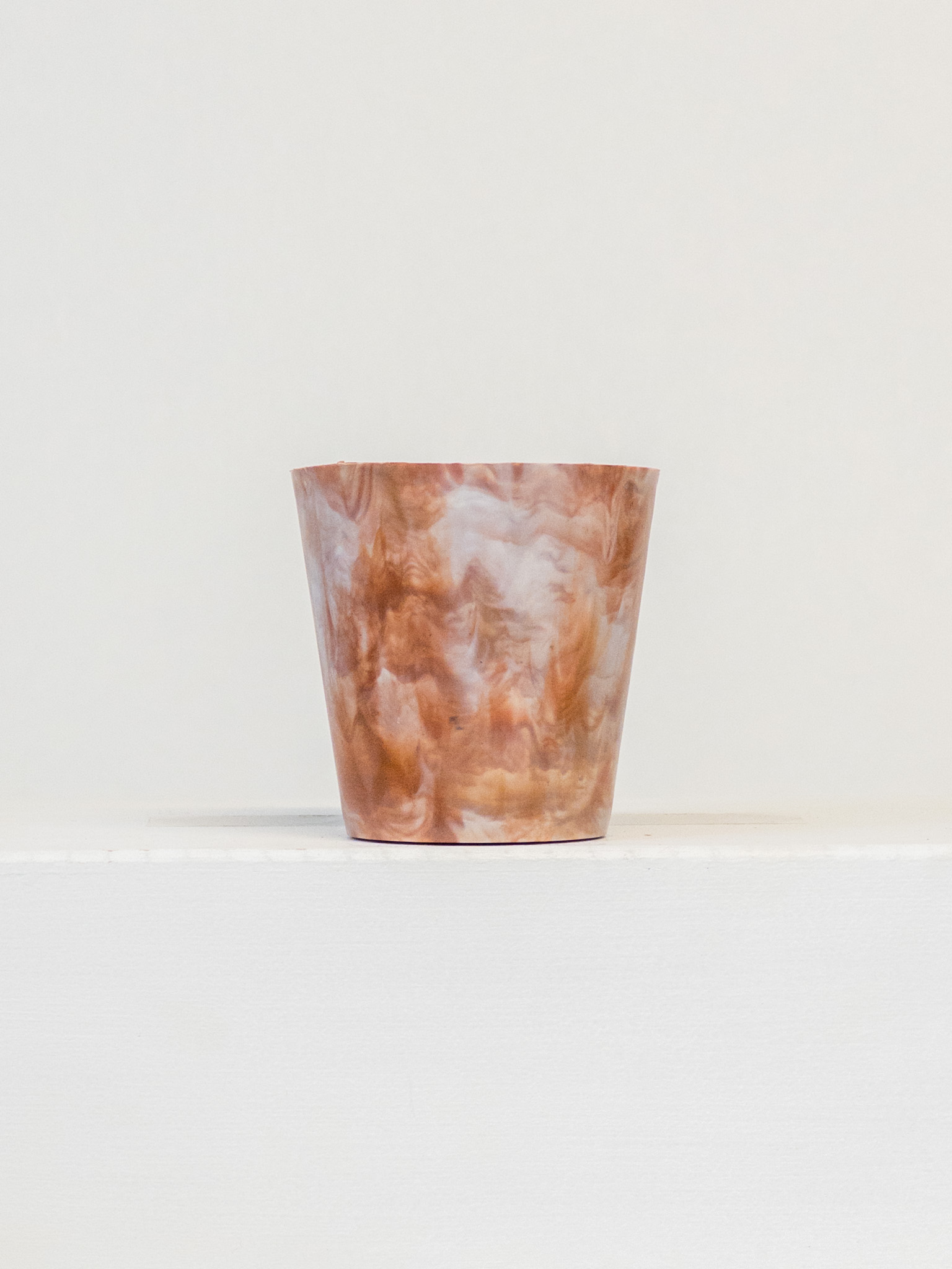 Deze bloempot is gemaakt van 100% gerecycled plastic, gejut van de stranden van Terschelling. Leuk voor een klein plantje op tafel. Ieder potje is uniek in kleur.